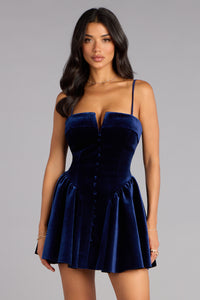 The Dana mini dress captivates with its plush velvet finish and timeless A-line silhouette. The sweetheart neckline and lace-up back strike the perfect balance between elegance and allure—ideal for any RSVP that calls for turning heads.