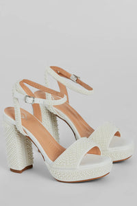 Showcase elite glamour at your next fancy affair in these faux pearl platform block heels! The faux leather heels feature all-over faux pearl embellishments for that trendy touch of sophistication. The open square-shaped toe has a wide toe strap, followed by thin adjustable ankle and heel straps with a buckle closure. The shoes are supported with a platform sole and a tall block heel. Style with the matching handbag for a chic seamless look!