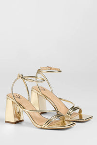 You'll have everyone head over heels for you in these sleek metallic block heels perfect for dressy occasions!