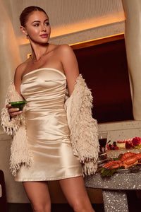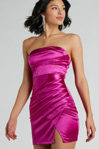 Perfect Glow Strapless Pleat A-Line Satin Mini Dress