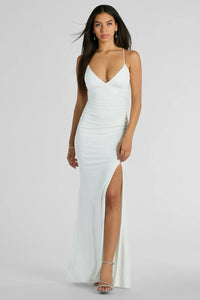 Jenn V-Neck Strappy Back Slit Long Formal Dress