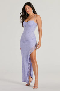 Ariyah Lace-Up Mermaid Glitter Mesh Formal Dress