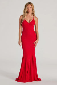 Eliana Lace-Up Mermaid Glitter Knit Formal Dress