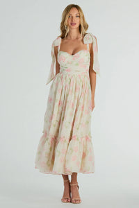 Gretchen Sweetheart Tie Floral Chiffon Midi Dress