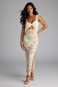 Slip into this sultry floral maxi dress designed with a romantic lace sweetheart bust and bold back cutout with a flirty high side slit.