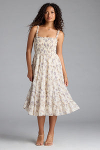 Create an effortlessly pretty look you'll adore for day dates in this ruffled floral chiffon midi dress! The breezy chiffon fabric is detailed with a dainty floral bouquet print for a simply beautiful vibe. The mid-length dress features a sleeveless square neckline, a smocked bodice for added stretch with smocked adjustable tank shoulder straps, a fitted empire waist, and a tiered ruffled design with a flowy A-line silhouette. Complete your look with espadrille wedges.