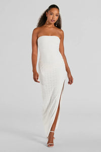 Tuscan Charm Strapless Slit Eyelet Maxi Dress