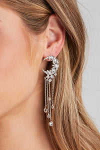 Crescent Moon Rhinestone Fringe Earrings