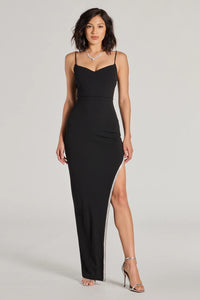 Teigen High Slit Rhinestone and Crepe Long Dress