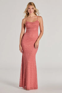 Kat Formal Glitter Lace-Up Column Dress
