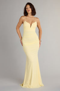 Corrie Mesh Mermaid Formal Dress Corrie Mesh Mermaid Formal DressSpecial Occasion A dress made for grand entrances, the Corrie mesh mermaid gown skims every curve before flowing into an elegant floor-length finish. The plunging neckline and sleek ruching add the perfect balance of drama and polish for your most formal occasions. Fit & Features - Mesh-lined fabric