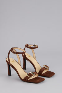 The heels that instantly upgrade every 'fit—sleek, bold, and so worth the strut. With smooth faux suede and a glam buckle strap, these stiletto heels bring the drama whether it’s dinner, drinks, or the dance floor.