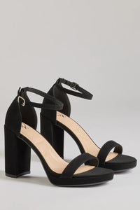 Elevate your fits' with platform block heels that feature an open almond toe with a single strap design, an adjustable ankle strap with buckle closure, and a platform sole. Complete with an LBD and clutch for the perfect date night outfit!