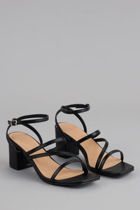 Sexy yet oh so chic, these faux leather stiletto heels are the best of both worlds! The square toe and thin straps add a sleek touch, while the adjustable ankle strap with buckle closure ensures a comfortable fit. Complete the look in a jumpsuit for dinner and drinks.