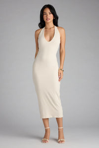 Chic Cutie Ribbed Knit Halter Midi Dress