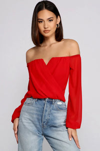 Keep it sophisticated in a chiffon top that is perfect for creating a trendy workwear look or a night out with friends. This long-sleeve crop top features a flattering off-the-shoulder neckline and a wired V-shaped bust with pleated detailing. This elegant going-out top is made of lightweight chiffon fabric and is lined with a stretchy knit fabric that shapes your curves. Style this long sleeve top with high-waist trousers pants with strappy platform heels for an elevated night-out look.