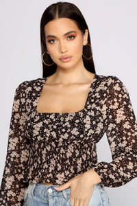 Floral Charm Smocked Long Sleeve Top