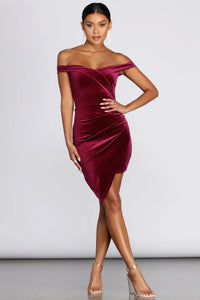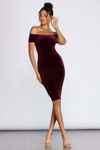 Special Touch Velvet Off-The-Shoulder Midi Dress