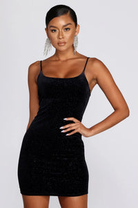 This sultry velvet bodycon dress is a must-have for creating a luxe look for a night out! It features a sleeveless square neckline, spaghetti straps, an open back with a lower strappy design, and a short, curve-hugging silhouette. Complete the outfit with sparkly heels.