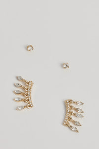Wear the glitzy trend rhinestone stud and crawler earrings set in gold for instant glam. With sparkling studs and teardrop crawlers, these beauties are perfect for any occasion. Shine on, bestie!