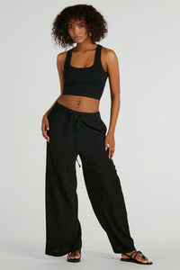 Unleash your inner laid back cutie with these high-rise wide-leg pants. The drawstring waist and side pockets provide comfort and convenience, while the flowy gauze woven fabric adds a touch of bohemian charm. Complete the look in a basic crop top for casual plans or travel!