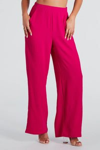 These airy woven wide-leg pants will bring the sunny vibes to your weekend plans! Designed with a lightweight woven fabric, they feature a flattering high-rise elasticized waist, front pockets, and a flowy wide-leg silhouette. Style with the matching crop top for a fabulous 'fit!