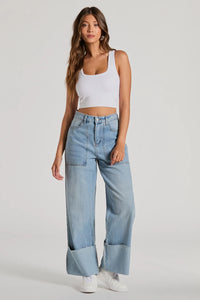 These high-rise denim jeans are the perfect addition to your wardrobe! These jeans accentuate your figure with a high-rise waist while providing a comfortable fit. The wide-leg silhouette adds a trendy touch, and the cuffed hem adds a stylish detail. Complete the look in a basic tank crop top and sneakers for any casual plans!