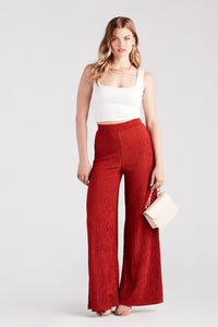 Flowy and effortless! These wide-leg pants are perfect for everyday styling. They feature a flattering high-rise banded waist, a wide-leg silhouette, and are designed on a textured knit fabric. Complete the look in a crop top and heels for dinner and drinks with friends!