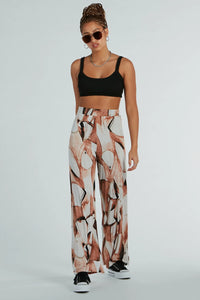 Look like a work of art in these abstract palazzo pants perfect for an evening downtown or vacation. The high-rise elasticized waistband and wide-leg silhouette allow for effortless comfort and style, while the abstract print adds a bold and unique touch. Complete the look in a corset and mules!