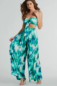 Indulge in high-end artsy style in these satin wide-leg pants you need for vacay! The satin fabric and abstract print make a statement, while the flattering high waist and wide-leg silhouette offer a breezy look. Pair with the matching top and sunglasses for a chic style!