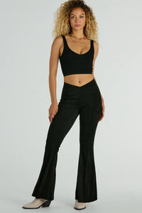 Prepare for a season of compliments in these faux suede pants for a bold look at concerts, parties, or festivals! Made with soft faux suede fabric, these pants are as comfortable as they are stylish. These mid-rise pants feature a flattering v-cut waist and hip-hugging fit, while the flared hem adds a touch of retro-chic. Complete the look in a flirty crop top.