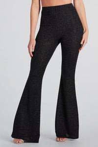 Fall in love with these stunning glitter pants! Featuring a glitter knit fabric, a high-rise waist, a hip-hugging fit, and a trendy flared hem, these pants are sure to turn heads in any crowd. Complete the look with the matching crop top.