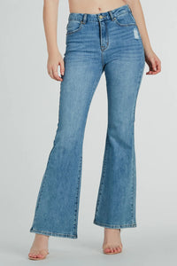 The Bri high-waist flare jeans by Windsor Denim are perfect for giving off those laid-back weekend vibes! Made with cotton-blend fabric, these jeans feature a high waist with a hip-hugging fit that continues through the leg and a trendy flared hem. They include a hidden front zipper and button closure, belt loops, two front and back pockets, a front distressed detail, and a stylish curved seam design at the back. Pair with a crop top and clear heels for a cute and casual look.