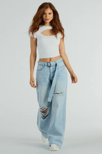 Cool Vibes High-Rise Belted Destructed Wide-Leg Jeans