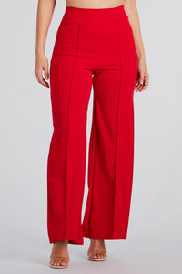 You'll be looking so chic and stylish in these wide-leg pants perfect for wearing from the office to a dinner date! They feature a high-rise waist, a hip-hugging fit, a wide-leg silhouette, and a classic pintuck front seam detail. The crepe fabric offers plenty of stretch. Pair these dressy pants with a cropped blouse and clear heel mules.