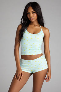Giving sleepover glam but make it spicy. This flirty halter pajama top brings the vibes with a cheeky margarita print and a soft, ribbed fit you’ll want to live in. Pair with the matching pajama shorts!