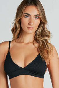 Experience the perfect everyday comfort of this seamless triangle bralette you need in your lingerie collection! Designed to fit and feel seamless under clothing, this bra features triangle cups, a V-neckline, adjustable spaghetti straps, and a supportive elasticized band with multiple back hook and eye fasteners. Style under a pretty blouse with trousers for a chic look!