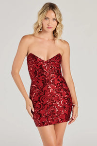 Lilian Sequin Strapless Lace-Up Mini Dress