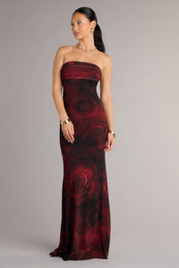 Romantic yet modern, the Renata strapless mesh gown skims the body with an elegant mermaid silhouette and a bold abstract print that feels like wearable art. Effortless and alluring, it’s a statement piece for evenings that call for something unforgettable.