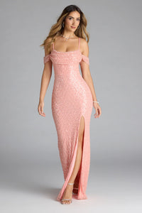 Sophina Cold Shoulder Pearl Beaded Sequin Formal Dress