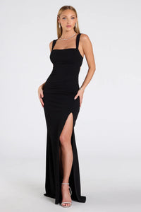 Opulent and unforgettable, the Ariel velvet gown drapes the figure with a liquid-like finish, featuring a sweetheart neckline and daring thigh slit. Finished with delicate straps and a floor-sweeping hem, it’s a timeless look that guarantees a showstopping entrance.