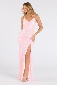 Rosie Lace-Up Slit Mermaid Sequin Formal Dress