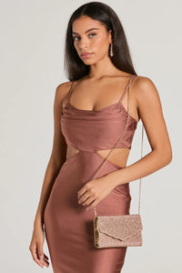 The difference between a clutch and an evening bag is the size and the formality. Clutches are typically smaller than evening bags and are intended to be carried in hand. An evening bag is slightly larger and includes shoulder straps to be carried across your shoulders. The formality also differs between the two, a clutch is best suited for dressy to semi-formal events like cocktail parties, bachelorette parties, and formal dining; whereas an evening bag is best suited for banquets and balls. The subtle difference between clutches and evening bags is important to know when it comes to styling your outfits for formal and semi-formal events. Knowing these details will help you style your outfits appropriately for the occasion at hand—there’s nothing worse than showing up to an event underdressed or overdressed. Not coordinating your accessories with your apparel can cause clashing and just throw off your intended look.