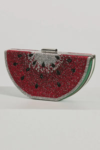 Take a bite into this summertime essential watermelon clutch bag! Perfect for slamming up your favorite dress, this clutch features a detachable chain shoulder strap, a top clasp closure, a rhinestone-embellished watermelon design, and a spacious interior for your essentials. Complete the look in a summer dress.