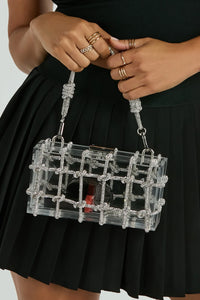 Clearly Luxe Rhinestone Knot Clear Box Clutch Bag