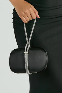Add the company of this luxurious sparkly clutch to your formal ensemble! This exquisite clutch features a detachable chain strap, top clasp closure, and a rhinestone embellished bow for a touch of elegance. The spacious interior allows you to carry your essentials in style. Complete the look in statement earrings for a black tie affair.