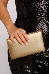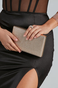 You'll be a total show stopper when you strut in the door with this box clutch! It features a box shape embellished with glimmering glitter and a top chain strap. Pair it with a bodycon dress to paint the town.