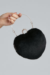 Your heart will beat for this trendy clutch bag! It features a top handle, shoulder strap, and a clasp closure on faux fur material. Complete the look for the date night in a classy red dress.