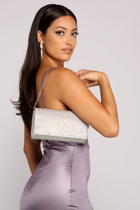 Make the night shine holding this glitter mesh foldover clutch! It features a snap closure, chain-link shoulder strap, a spacious interior with one pocket. Complete the look sultry long dress.