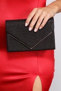 Accessorize your night out 'fit with this glitter mesh clutch for major glitzy vibes! It features a rectangular envelope design, a fold-over closure with a sleek metal trim, and an included chain to convert the clutch to a crossbody purse. Complete your look with a glam ring set.